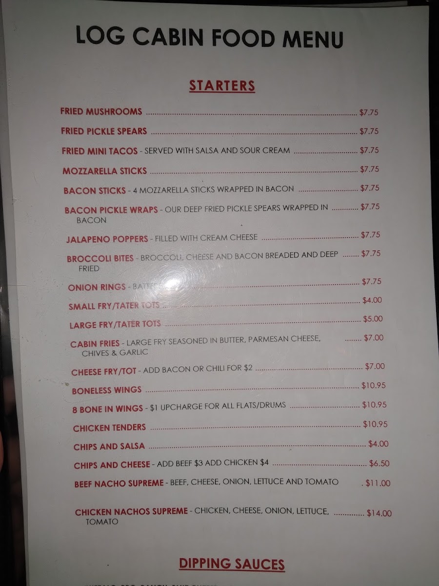 Welcome to Log Cabin, your cozy destination located at 2401 Division Ave S in Grand Rapids, MI. This inviting bar boasts a menu that harmoniously blends comfort food with local charm. The starters are designed to please, featuring crispy Onion Rings and savory Chicken Tenders that come highly recommended. For the main attraction, the Chipotle Burger and the unique French Onion Burger take the classic burger experience up a notch, while sandwiches like the Jalapeño Popper Grilled Cheese present a delightful twist on tradition.